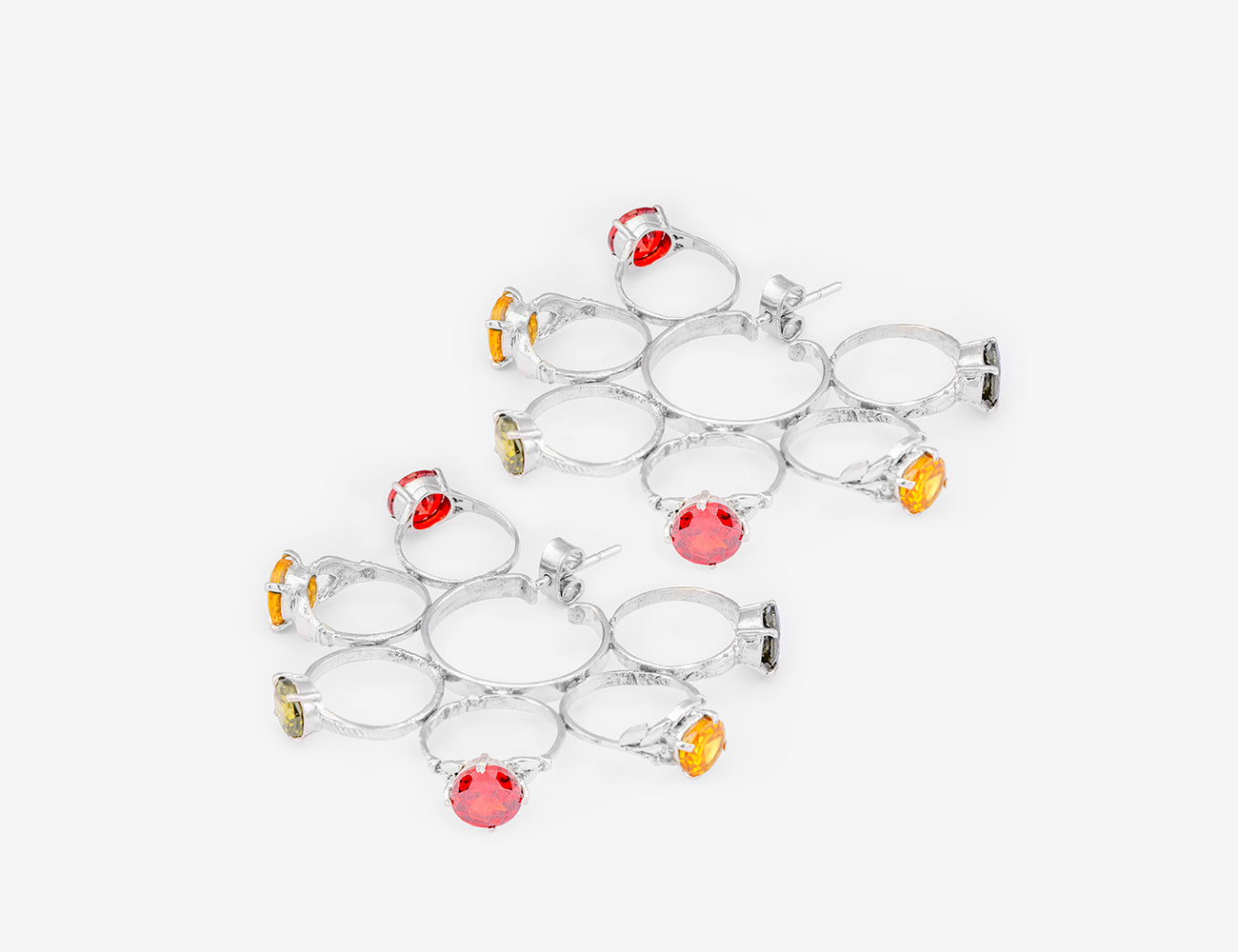 SILVER RINGS ASYMMETRICAL EARRINGS